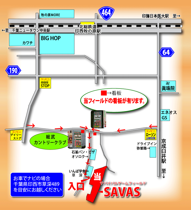 ※お車でナビの場合、千葉県印西市草深489を目安にお越しください。