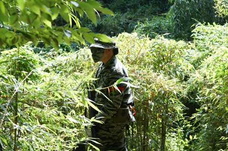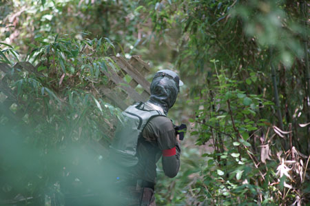 風が通ればいくらか涼しい森ですが....